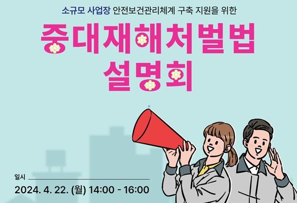 이번 설명회는 고용노동부 산하기관인 한국산업안전보건공단의 교육 전문 강사가 진행을 맡아, ▲산업안전보건법 및 중대재해처벌법의 개요와 판례 ▲안전보건관리체계 구축을 위한 중대재해처벌법의 이해 ▲고용노동부의 산업안전대진단 및 중대재해처벌법 관련 정부 지원사업 안내 등을 다룬다.