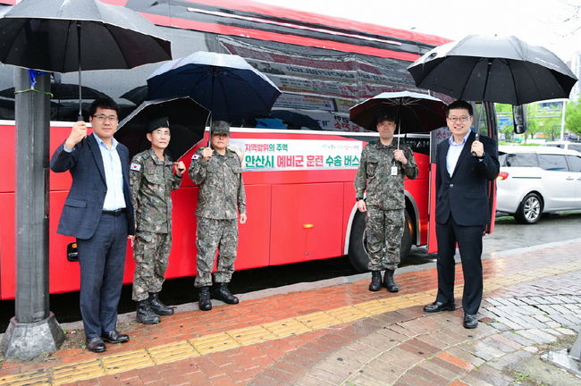 수송 전용 버스는 예비군 법에 근거, ‘안산시 예비군 훈련장 차량운행 지원에 관한 조례’가 지난해 10월 4일 제정된 이후, 올해부터 총 2대(45인승)의 차량이 훈련편성 도합 111일간 예비군 훈련 시 운행될 계획이다.