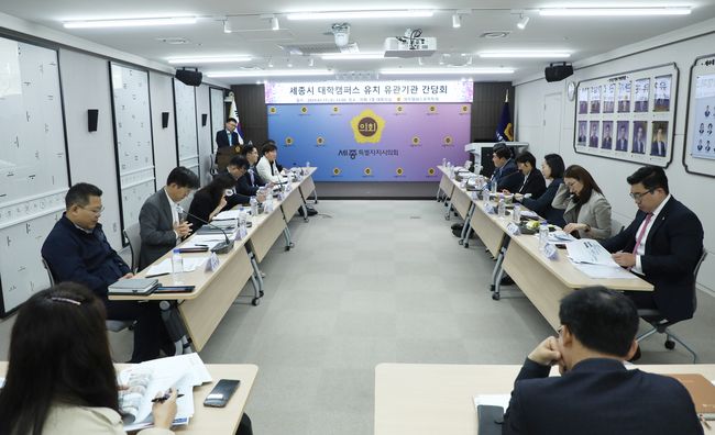 세종특별자치시의회 ‘대학캠퍼스 유치를 위한 특별위원회’(이하 ‘대학유치특위’)는 17일 대학캠퍼스 유치 유관기관과의 간담회를 개최했다.