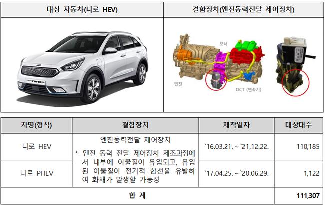 기아 니로 HEV 등 2개 차종 111,307대는 엔진동력전달 제어장치 제조 불량으로 5월 7일(화)부터, K9 21,770대는 전자제어유압장치(HECU)의 내구성 부족으로 4월 24일(수)부터, 니로 PHEV 등 2개 차종 7,287대는 전조등의 상·하향 전환 불량으로 5월 2일(목)부터 시정조치에 들어간다.