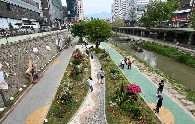 그 외 ▲석축을 이용한 돌에 피는 꽃 `플라워 월` ▲수변 버드나무를 활용한 `블러썸 트리(꽃나무)` ▲수변 정원 `꽃창포원` ▲포토존 `꽃액자` 등을 설치해 볼거리와 즐길거리를 동시에 제공한다.