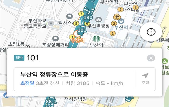 초정밀 버스 위치 정보 구현 사진 (카카오맵) 부산역