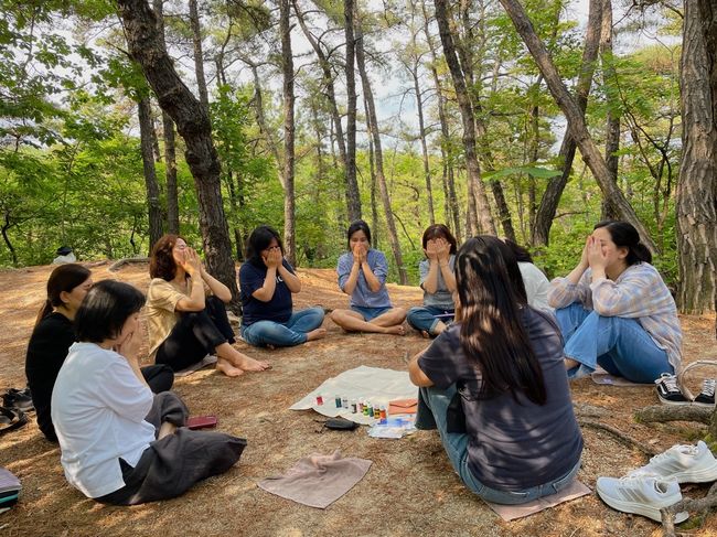 관악산 치유센터 진행하는 `나를 돌아보는 시간` 수업에 참여해 아로마테라피를 하는 주민들