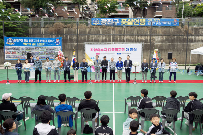 자양2동에 소재한 다목적구장은 면적 1,023㎡ 규모로 조성됐다. 풋살장 1면이 설치돼 있고 족구장 겸용이 가능하다. 구 예산 1억 4천만원을 투입했으며, 8개월 넘는 노력 끝에 주민을 위한 체육시설로 변화시켰다.