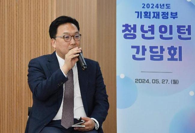 김병환 기획재정부 1차관은27일 세종 소셜캠퍼스 온(溫)에서 ’24년 상반기 기재부 청년인턴(총 37명)과 만나 청년인턴의 그간 업무성과와 활동소감 발표를 듣고, 청년 고민을 청취하는 자리를 가졌다.