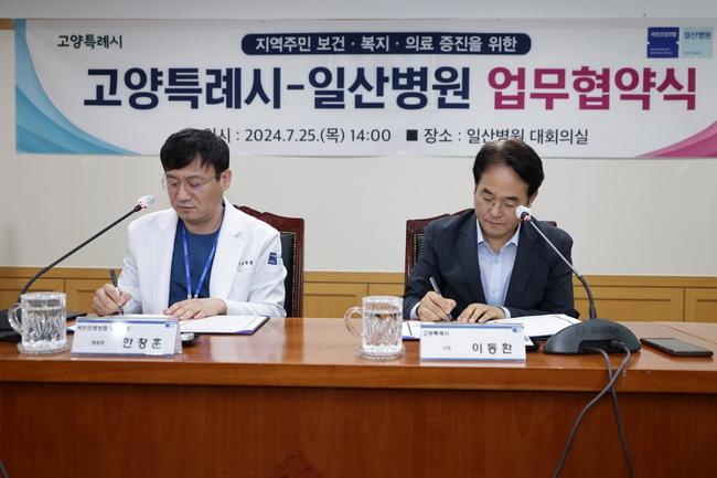 고양특례시(시장 이동환)는 지난 25일 국민건강보험공단 일산병원(병원장 한창훈)과 지역의 건강 취약계층을 위한`보건·복지·의료 통합서비스 제공`업무협약을 체결했다고 밝혔다.