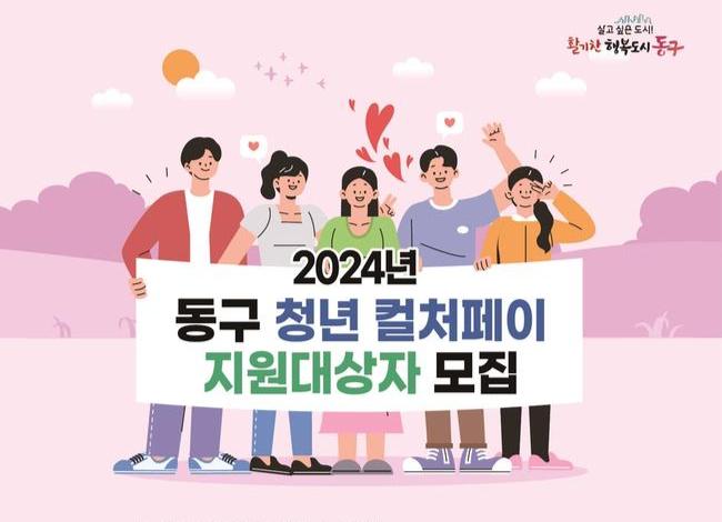 인천 동구(구청장 김찬진)는 관내 청년들을 대상으로 문화·예술 및 스포츠 활동비 10만원을 지급하는 `2024년 동구 청년 컬처페이 지원사업`을 시행한다고 밝혔다.