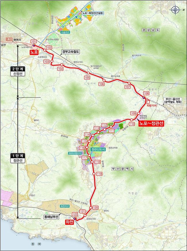 도시철도 `노포~정관선` 노선도
