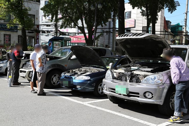 동작구는 내달 5일 남성역 공영주차장에서 추석맞이 자동차 무상 안전점검을 실시한다. 사진은 차량 점검을 진행중인 모습