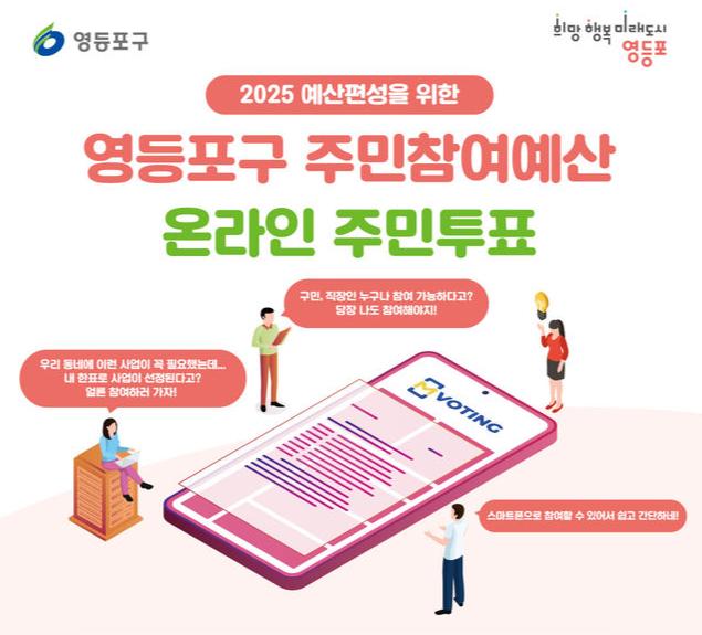 영등포구가 9월 4일까지 내년도 사업의 우선순위를 결정하는 ‘2025년 주민참여예산 온라인 주민투표’를 진행하여, 예산의 민주성과 투명성을 높인다고 밝혔다.
