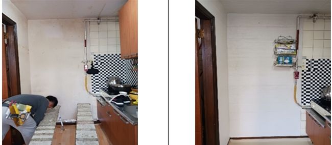 친환경 벽지 교체 시공 전 모습 (좌) 친환경 벽지 교체 시공 후 모습 (우)