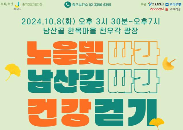 서울 중구는 10월 8일 남산골 한옥마을 천우각 광장을 시작으로 남산 북측순환로 일대에서 건강 걷기 행사를 진행한다.