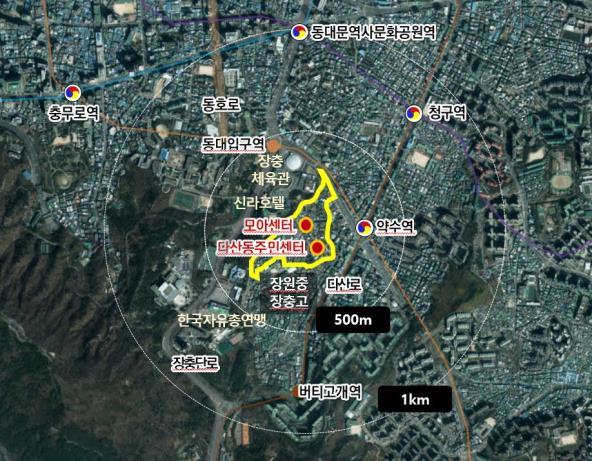 휴먼타운 2.0 후보지 위치(노란색 실선 내) 다산동