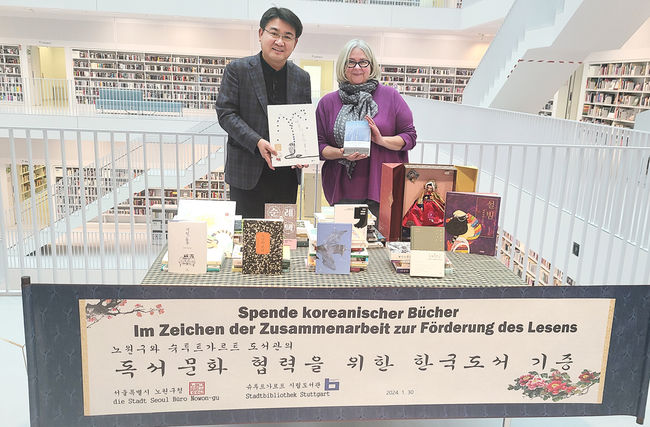 지난 1월 서울 노원구가 독일 슈튜트가르트도서관에 기증한 한국어 도서가 독일 현지의 K-컬쳐 전파에 앞장설 것으로 보여 주목된다.