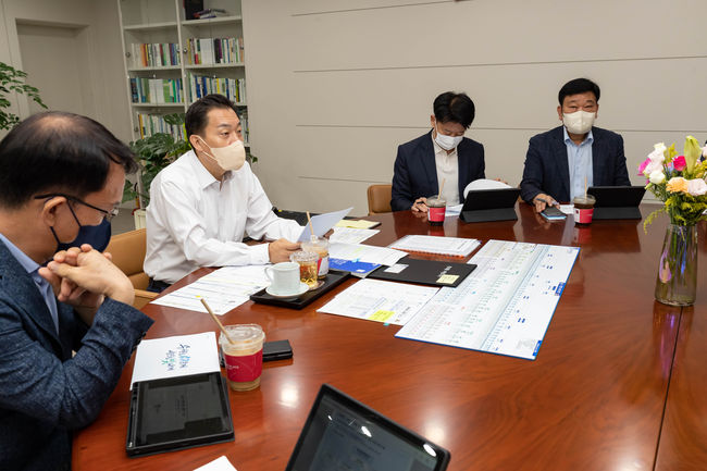 이날 회의에서는 ‘중대재해 처벌 등에 관한 법률’ 관련 논의도 이뤄졌다. 올해 1월 27일부터 시행된 중대재해처벌법은 사업장 내 노동자의 안전·보건을 확보하도록 사업주·경영책임자에게 의무를 부과한다. 안전·보건 확보 의무를 이행하지 않아 중대 재해가 발생했을 때 지자체장, 사업주·경영책임자가 처벌받는다.