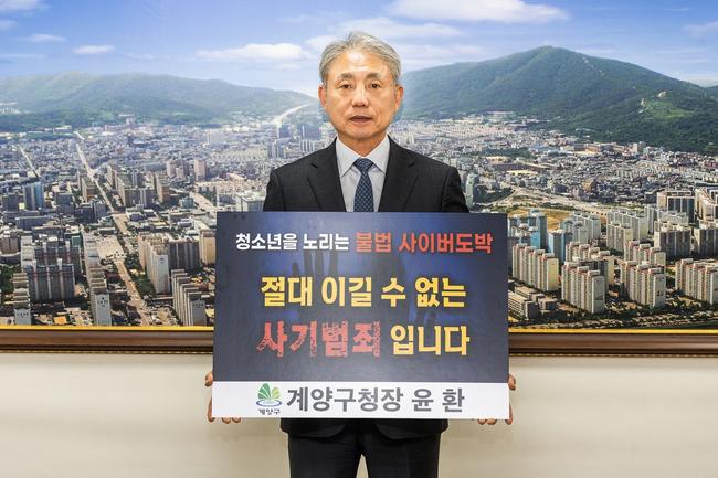 윤환 계양구청장이 최근 급증하는 청소년 불법 도박 문제의 심각성을 알리기 위해 지난 17일 `청소년 도박 근절 프로젝트 릴레이 챌린지`에 동참했다.