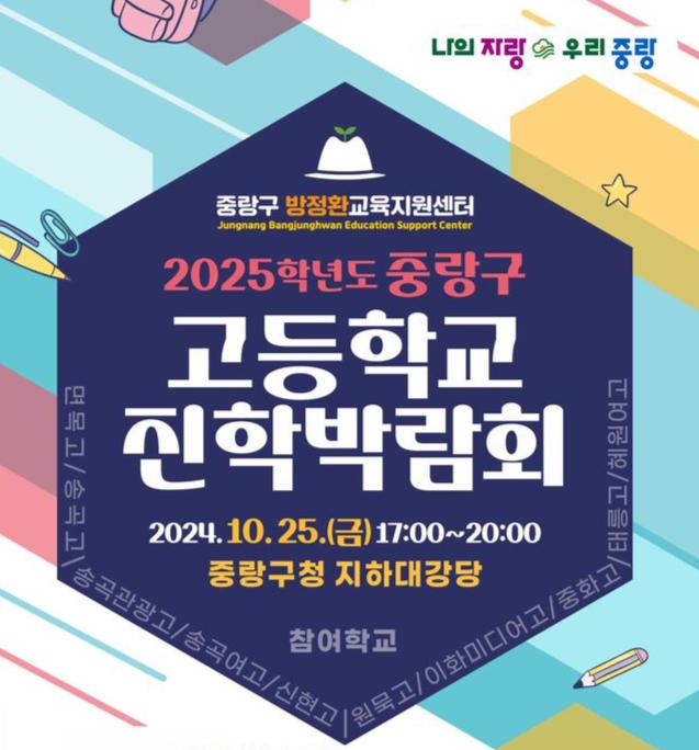 중랑구가 오는 지역 내 고등학교 진학을 앞둔 학생과 학부모 500여 명을 대상으로 ‘2025학년도 중랑구 고등학교 진학박람회’를 개최한다.