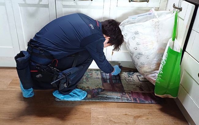 주거 취약계층 아동 가정에 방문해 `해충 작업`을 하고 있는 모습