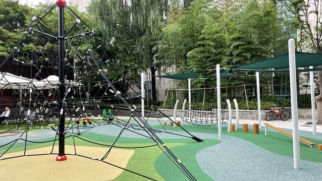공원 중앙부는 어린이 놀이시설로 꾸몄다. 아이들이 뛰어놀면서 모험심을 기를 수 있도록 네트 놀이대, 모험 놀이대, 바구니 그네 등을 설치했다. 아이들의 촉감 활동을 위한 모래놀이 공간도 마련했다. 학습과 재미를 모두 고려해 아이들의 놀 권리를 보장함과 함께 건강한 성장을 돕고자 한다.