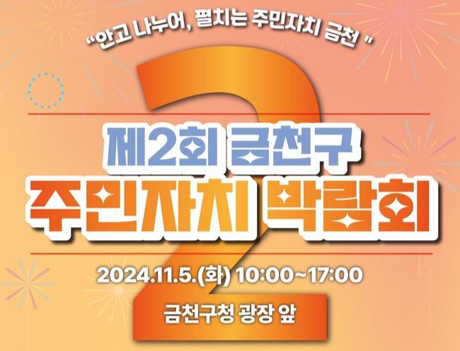 금천구(구청장 유성훈)는 오는 11월 5일 오전 9시부터 구청 광장에서 `2024 금천구 주민자치 박람회`를 개최한다고 밝혔다.