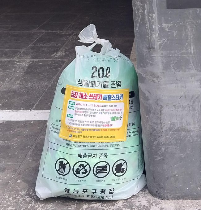 영등포구가 본격적인 겨울 김장철을 맞아 가정에서 나오는 김장 쓰레기의 ‘일반 종량제 봉투 배출’을 한시적으로 허용하고, 시장 일대의 적치물 정비를 실시한다고 밝혔다.