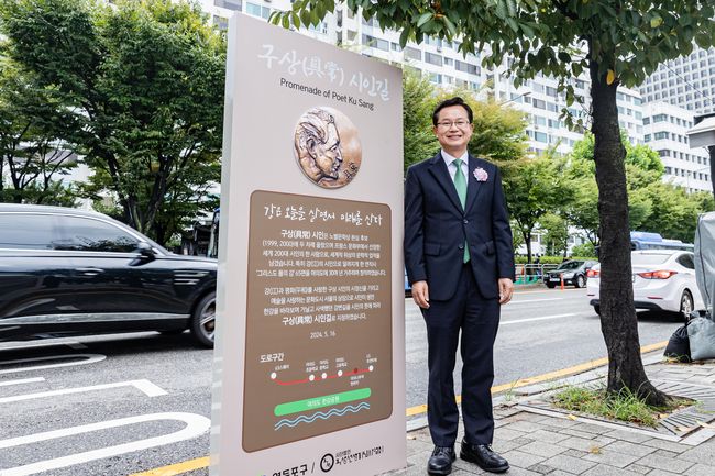 올해 구상시인길 명예도로 표지석 제막식에 참석한 최호권 영등포구청장