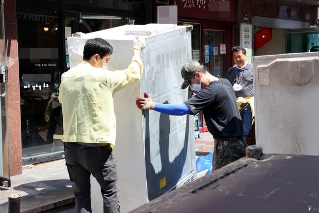 또한 각 동 유관 단체에서도 신속하게 주택, 상가 수해복구 작업에 참여하여 힘을 보태고 있다.