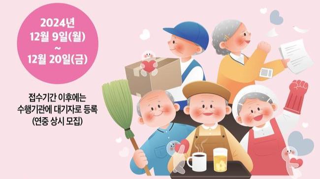 65세 이상 기초연금대상자 또는 직역연금수급자(배우자포함)가 신청가능하며, 월 29만 원(월 30시간)의 활동비를 받는다.