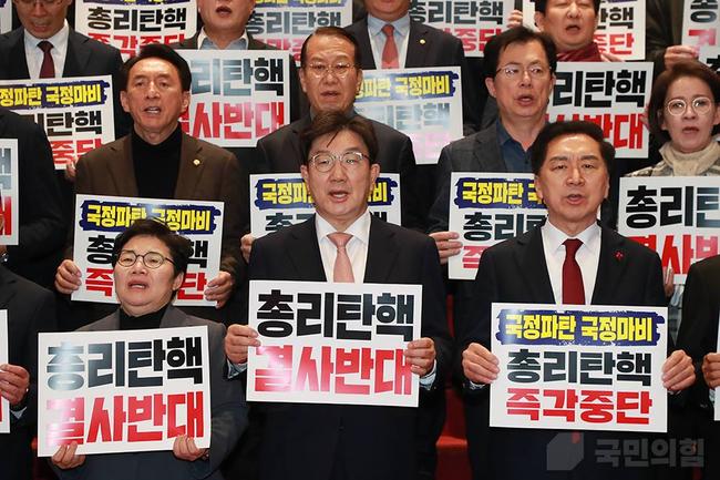 특히 권 원내대표는 한덕수 대행 탄핵이 경제와 외교에 미칠 영향을 우려했다. 그는 "금융시장이 불안해지고 수출이 타격을 받으며 민생경제가 직격탄을 맞을 것"이라며 "정상 가동을 시작한 한미외교, 한일외교가 또다시 마비될 것"이라고 전망했다.