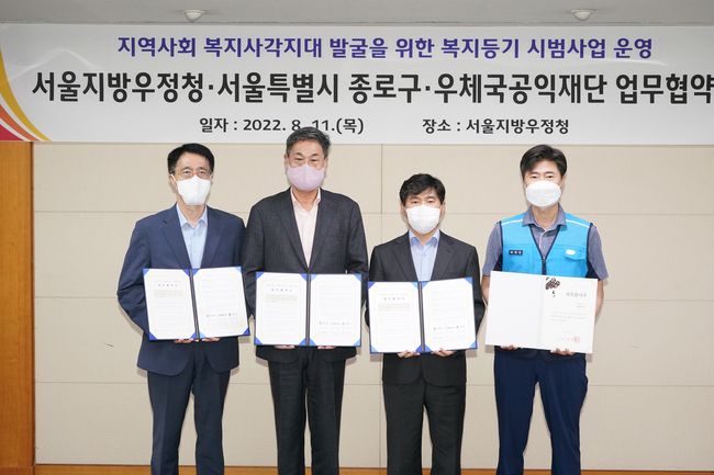먼저 종로구와 서울지방우정청, 우체국공익재단이 함께하는 ‘종로복지등기’ 우편 시범사업은 광화문우체국 소속 집배원 99명이 명예사회복지공무원이 돼 지역사회 위기 가구 주민을 발굴하는 것을 골자로 한다.