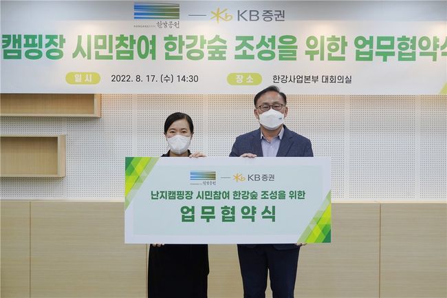 서울시 한강사업본부는 난지캠핑장 녹음공간 조성 및 시설개선을 위해 8월 17일 KB증권과 「난지캠핑장 시민참여 한강숲 조성」 업무협약(MOU)을 체결했다고 밝혔다.