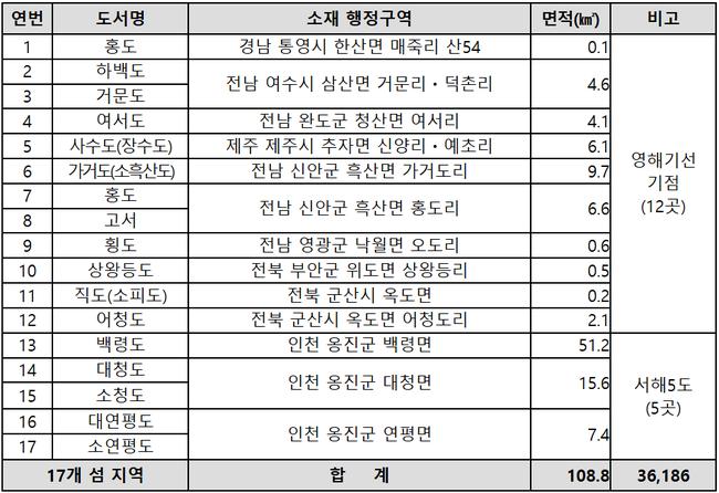 외국인 토지거래허가구역 신규 지정 17개 도서