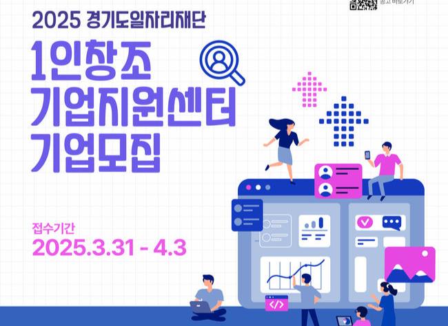 신청 기간은 3월 31일부터 4월 3일 오후 4시까지이며, 공고일(3월 4일) 기준 경기도에 주소를 둔 1인 창조기업 예비 창업자 또는 창업 7년 이내의 경기도 내 주 사무소를 둔 1인 창조기업 창업자라면 신청할 수 있다.