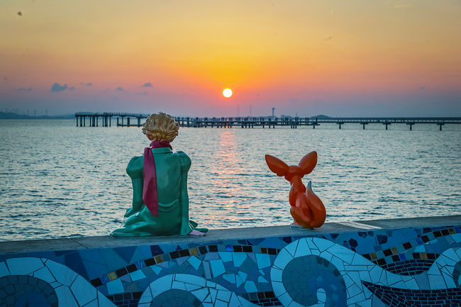 시흥시 거북섬 어린왕자 일몰스폿, 여우와 함께 일몰을 바라보고 있다