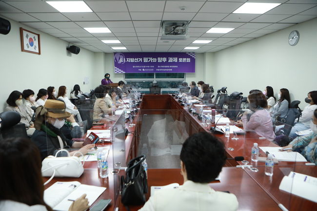 남인순 더불어민주당 의원은 19일 한국여성의정과 국회의원회관 제3간담회의실(203호)에서 `6.1 지방선거 평가와 향후 과제 토론회`를 진행했다. 남인순 더불어민주당 의원은 19일 한국여성의정과 국회의원회관 제3간담회의실(203호)에서 `6.1 지방선거 평가와 향후 과제 토론회`를 진행했다.