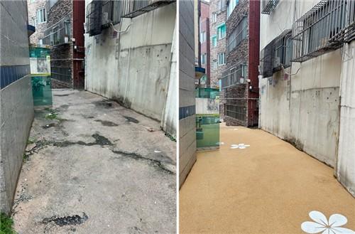 이에 구는 어두운 환경개선과 미끄럼 방지 효과를 고려해 각종 공법 및 유사 현장 비교 검토 등 현장 여건에 적합한 포장방법을 선정, 골목길을 정비했다.