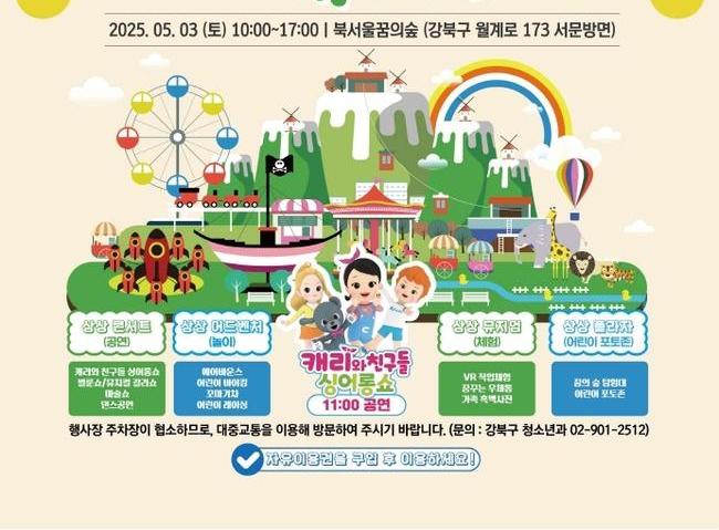 서울 강북구(구청장 이순희)는 제103회 어린이날을 맞아 오는 5월 3일(토) 북서울꿈의숲(월계로 173)에서 `제2회 강북구 어린이날 대축제`를 개최한다고 밝혔다.