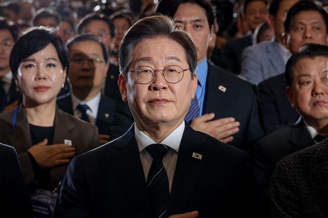 이재명 제21대 대통령선거 후보자가 2025.04.30.(수) 국회 의원회관 대회의실에서 열린 제21대 대통령선거 선거대책위원회 출범식에 참석하여 구호를 외치며 기념 촬영을 하고 있다.