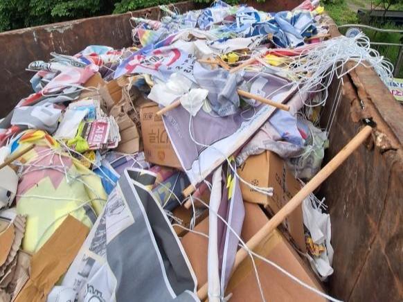 20일 구에 따르면 폐현수막은 선거, 행사, 광고 등이 끝난 뒤 버려지는 플라스틱 천으로, 주로 소각을 통한 처리로 환경에 나쁜 영향을 끼친다.