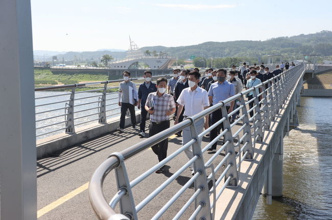 이날 이시장은 임시개통한 상생인도교를 걸으면서 시민들이 편리하고 쾌적하게 이용할 수 있는지 살펴봤으며, 포항 취수장보 가동 현황을 점검했다.