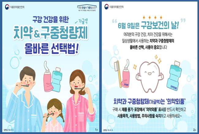 식품의약품안전처는 6월 9일 ‘구강보건의 날’을 맞아 치아미백제, 구중청량제, 치약 등 구강 관련 의약외품의 올바른 사용법과 부당광고 주의사항을 안내하고, 제품 구매 전 ‘의약외품’ 표시와 식약처 허가 여부를 반드시 확인할 것을 당부했다.