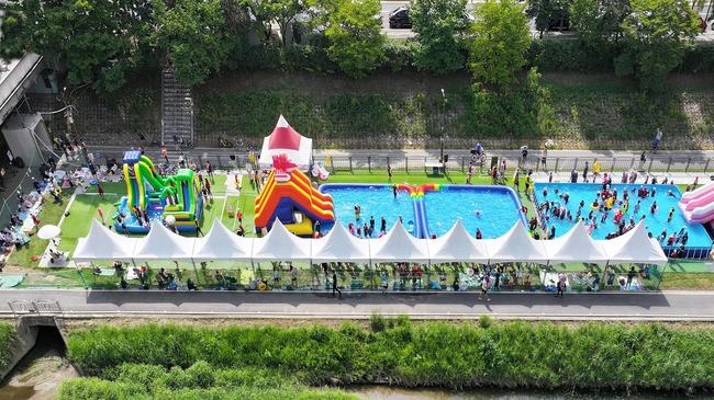 정자동 신기초교 앞과 야탑동 탄천종합운동장 앞 등 2곳 탄천 물놀이장은 오는 7월 26일 대형 튜브 풀장(이동식)을 설치해 개장한다.