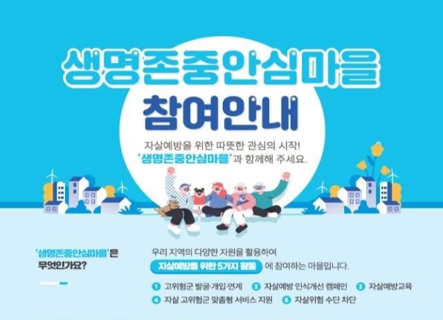 `생명존중안심마을`은 읍·면·동 단위의 지역사회 자원과 네트워크를 적극적으로 활용해 자살 고위험군을 조기에 발굴·개입하고, 맞춤형 서비스를 제공하는 한편, 자살예방 교육과 캠페인, 자살수단 차단 활동 등을 통해 지역 내 자살률을 낮추고 생명존중 문화를 확산하는 것을 목표로 한다.