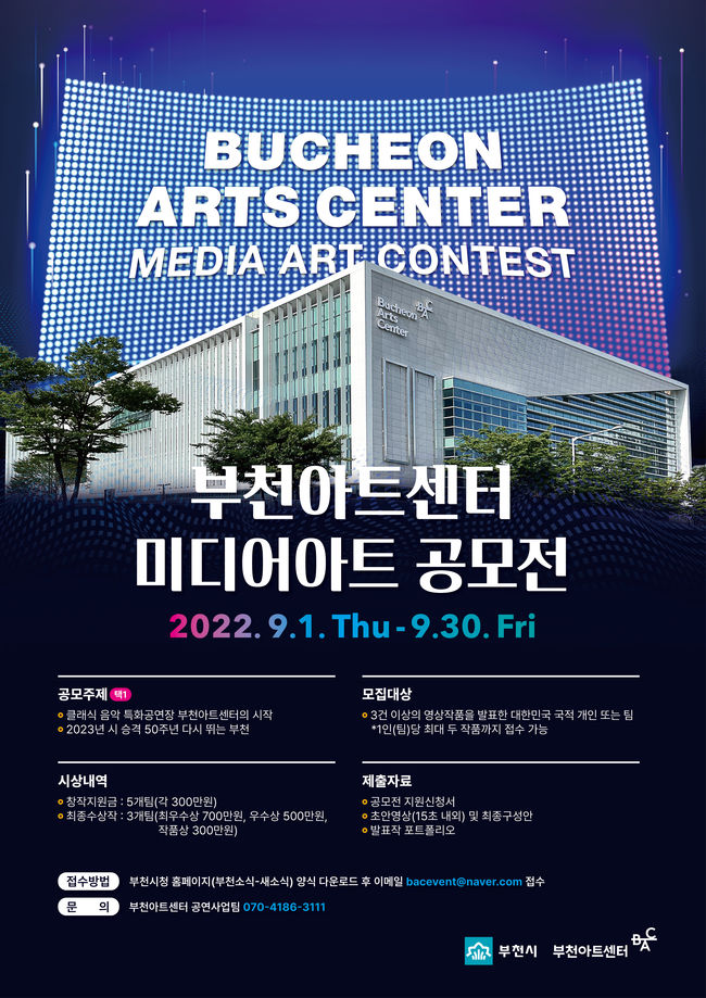 공모전에 대한 자세한 사항은 부천시청 홈페이지 새소식을 참고하거나 부천아트센터 공연사업팀(070-4186-3111)으로 문의하면 된다.