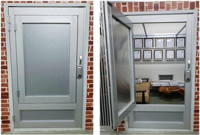 안전차수문은 물감지 센서를 통해 40cm이상 침수 시 자동 경보 시스템이 발동되며, 하부는 차수판 기능을 하고 상부는 별도의 출입문으로 개폐할 수 있어 침수 시 문이 열리지 않아 탈출하지 못하는 불의의 사태를 예방할 수 있다는 장점이 있다.