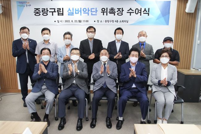 지난 22일 중랑구청에서 열린 구립 실버악단 위촉장 수여식 기념촬영 모습