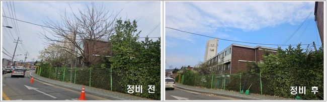 위험수목 정비 전후 모습.