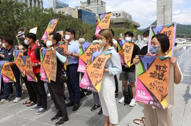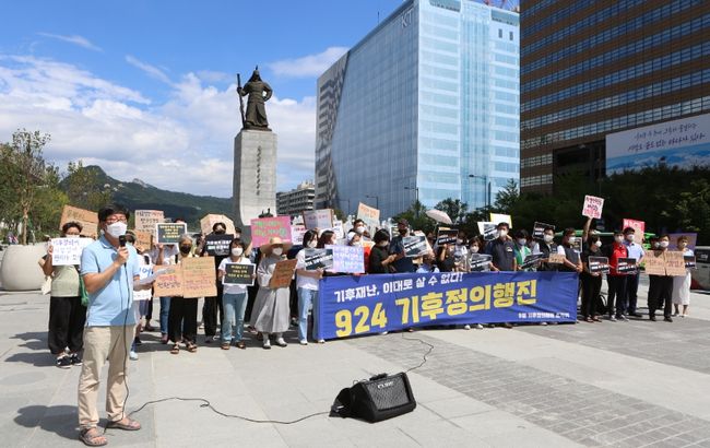 기후위기 비상행동은 24일 서울 광화문에서 ‘9.24 기후정의행진’ 에 나서면서 “기후재난, 이대로 살 수 없다”고 외쳤다.