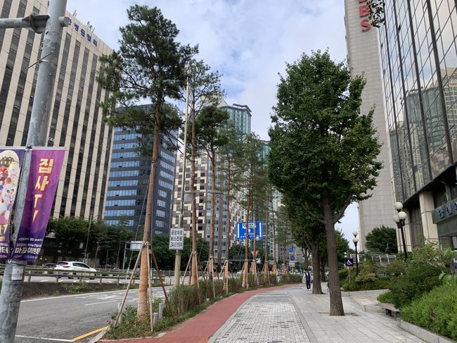 마포구가 마포대로에 한국 전통 수종인 소나무를 식재해 안전성과 경관을 개선한 ‘소나무 숲길’을 조성했다.