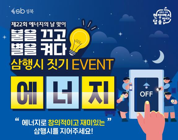 서울 성북구(구청장 이승로)는 제22회 에너지의 날을 맞아 구민의 에너지 절약 의식과 탄소중립 실천 동기를 높이기 위해 ‘에너지 삼행시 짓기’ 이벤트를 진행했다고 5일 밝혔다.
